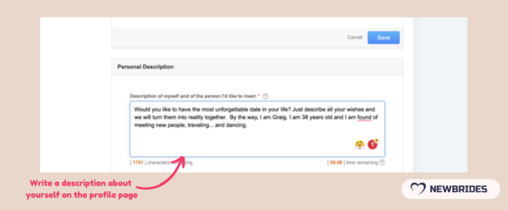 - Complete all profile elements. Therefore, it will be easier for girls to decide whether you are their potential match.