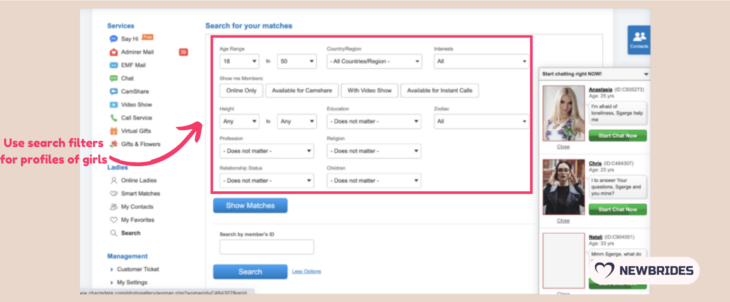 When you head over to the site for the first time, you will see that the moderators do their best to ensure secure and effective communication online. They delete empty or suspicious accounts and solve the client’s issues. The layout isn’t cluttered, but the intrusive pop-ups spoil the impression. That is why we give KissRussianBeauty 9 out of 10 for the first impression.