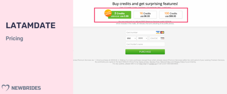 Even though multiple features on LatamDate are available free of charge, you should still pay for the majority of communication features available on the site. Keep in mind that the platform uses a credit-based system that allows you to pay only for those features you use. Our team decided to check out how much money you need per month to actively use the site. Suffice it to say, we purchased the largest pack of 100 credits, and it appeared more than enough to chat with multiple girls, exchange media files and even communicate via a video chat.